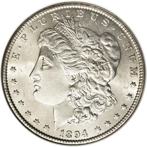 <B>1894<img border='0' src='http://www.heritagecoins.com/images/star.gif' width=10 height=10>$1> AU58 NGC.</B></I> This lightly circulated Morgan retains considerable luster and is nicely struck, save for minor softness in the hair over the ear. Traces of tan-gold color show up under magnification.