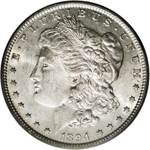 <B>1894 S$1 AU58 PCGS.</B></I> Certain dates are elusive in high grades, and others are hard to locate in all grades. The 1894 falls into the latter category, from a mintage of just 110,000 business strikes, the second lowest of the entire Morgan dollar series. This lovely near-Mint example has frosty luster with only the faintest trace of wear on the high points. Each side exhibits a trace of gold toning on otherwise brilliant silver surfaces.<BR><BR><b>Shipping:</b> Coins & Currency (<a target="_blank" href="http://www.heritageauctions.com/common/shipping.php">view shipping information</a>)