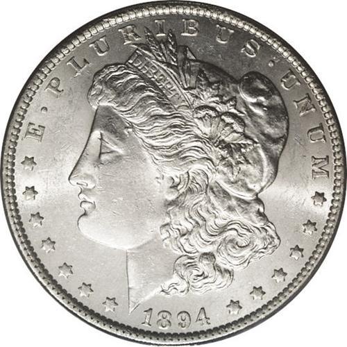 <B>1894<img border='0' src='http://www.heritagecoins.com/images/star.gif' width=10 height=10>$1 AU58 PCGS.</B></I> Satiny and untoned with just the slightest friction on Liberty's cheek that precludes a Mint State classification. Part of an impressive offering of AU and finer examples of this key Philadelphia issue.