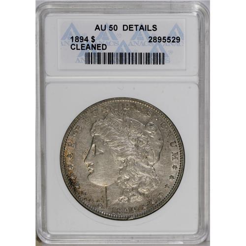1894 S$1 --Cleaned--ANACS. AU50 Details. A lightly worn