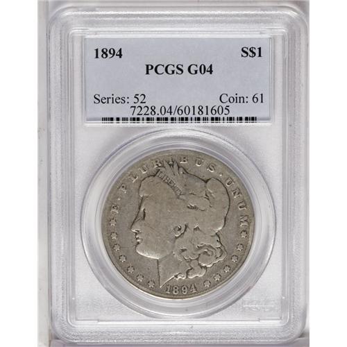 1894 S$1 Good 4 PCGS. Heavily worn yet legible, this d
