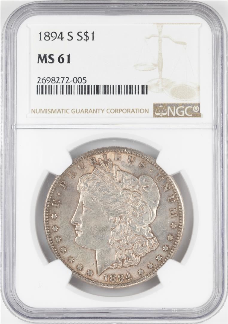 One 1894-S $1 Morgan Silver Dollar Coin NGC MS61. NGC Certified.