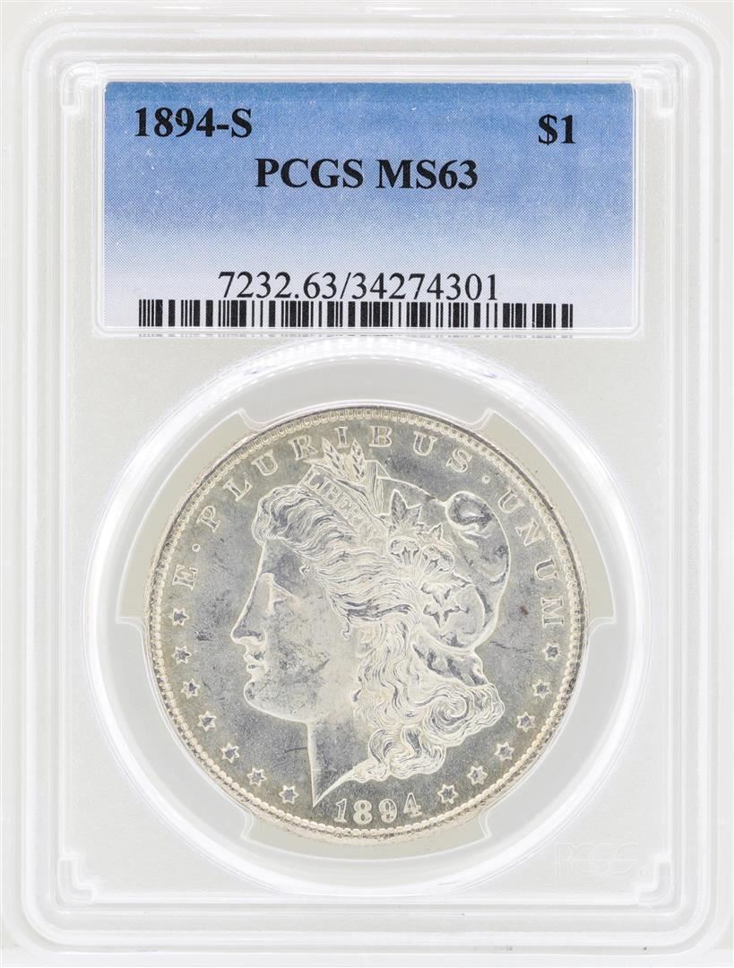 One 1894-S $1 Morgan Silver Dollar Coin PCGS MS63. PCGS Graded.