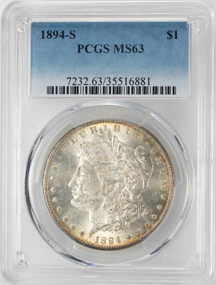 One 1894-S $1 Morgan Silver Dollar Coin PCGS MS63. PCGS Graded.