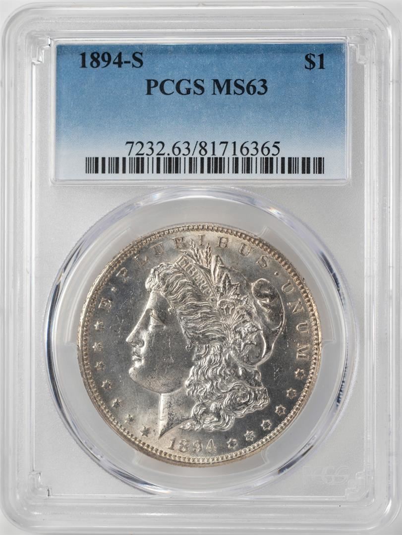 One 1894-S $1 Morgan Silver Dollar Coin PCGS MS63. PCGS Graded.