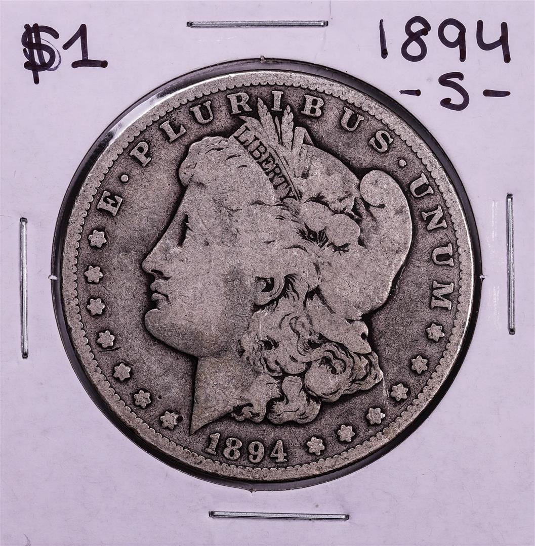 One 1894-S $1 Morgan Silver Dollar Coin.