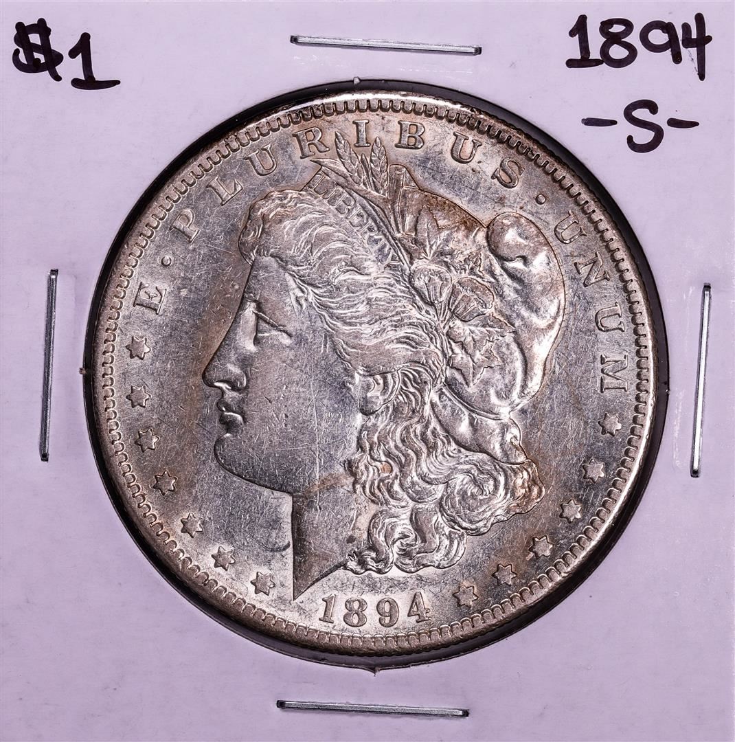 One 1894-S $1 Morgan Silver Dollar Coin.