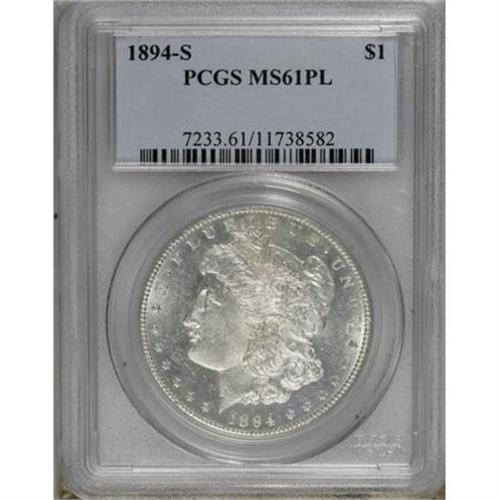 <B>1894-S $1 MS61 Prooflike PCGS.</B></I> PCGS Population (15/81). NGC Census: (14/104). Numismedia Wsl. Price for NGC/PCGS coin in MS61: $500. (#7233)<BR><BR><B>Coin Engraver:</B> George T. Morgan<BR><BR><b>Shipping:</b> Coins & Currency (<a target="_blank" href="http://www.heritageauctions.com/common/shipping.php">view shipping information</a>)