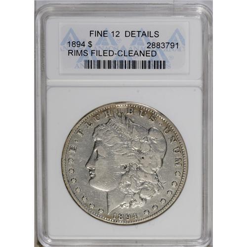 1894 S$1 --Rims Filed, Cleaned--ANACS. Fine 12 Details.