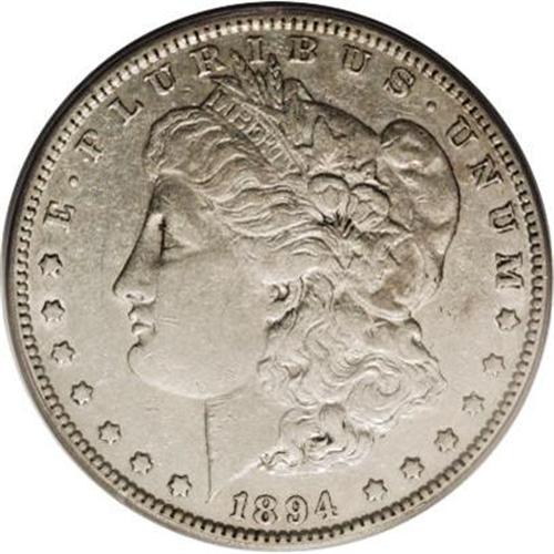 <B>1894<img border='0' src='http://www.heritagecoins.com/images/star.gif' width=10 height=10>$1> XF45 PCGS.</B></I> This is an attractive, lightly circulated example that retains considerable luster beneath pale grayish-silver color. The 1894 Philadelphia Mint silver dollar is a key-date in the series. Just 110,000 of these were struck, the second lowest mintage of any business strike Morgan dollar behind the 1893-S.