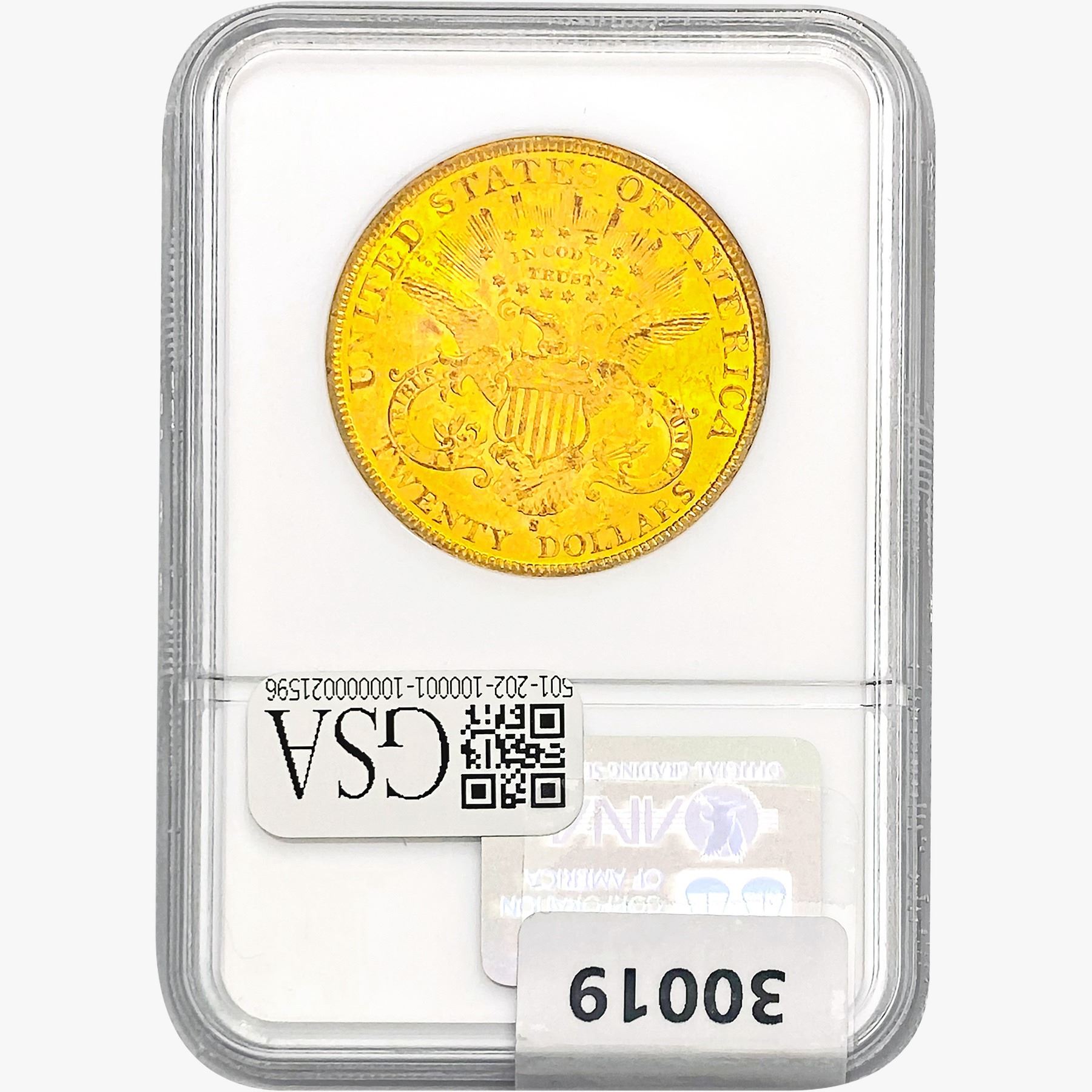 COINS AND CURRENCY LISTED IN GSA'S CATALOG AS GRADED AND ENCAPSULATED BY PCGS, NGC, ANACS, ICG, PCGS CURRENCY, PMG, PCGS BANKNOTE GRADING, CMC OR ANY OTHER THIRD-PARTY GRADING SERVICE ARE LIKEWISE SOLD "AS-IS" EXCEPT AS EXPRESSLY SET FORTH HEREIN. ALL THIRD-PARTY GRADING SERVICE GUARANTEES, INCLUDING AUTHENTICITY, ARE THE SOLE RESPONSIBILITY OF THE THIRD-PARTY GRADING SERVICE AND NOT WARRANTIES OR GUARANTEES OF GSA. BIDDERS SHOULD CONTACT THESE THIRD-PARTY GRADING SERVICES DIRECTLY WITH RESPECT TO ANY CLAIMS OR QUESTIONS THEY MAY HAVE CONCERNING THEIR GUARANTEES AND WARRANTIES. BIDDERS ACKNOWLEDGE AND AGREE THAT AUCTIONEER IS NOT BOUND BY OR LIABLE FOR ANY OPINION OR CERTIFICATION BY ANY THIRD-PARTY GRADING SERVICE. REMOVAL OF A PRODUCT FROM ITS PROTECTIVE CASING OR HOLDER OR ALTERATION OF ANY COIN HOLDER WAIVES ALL RIGHTS CONCERNING THE PRODUCT CONTAINED THEREIN.