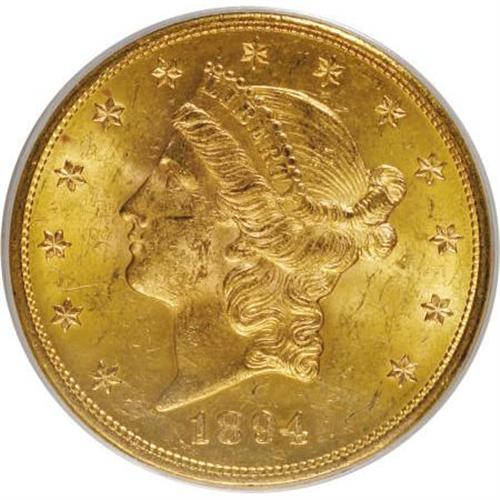 <B>1894-S $20 MS62 PCGS.</B></I> PCGS Population (1104/684). NGC Census: (1403/542). Mintage: 1,048,550. Numismedia Wsl. Price for NGC/PCGS coin in MS62: $755. (#9026)<BR><BR><B>Coin Engraver:</B> James B. Longacre<BR><BR><b>Shipping:</b> Coins & Currency (<a target="_blank" href="http://www.heritageauctions.com/common/shipping.php">view shipping information</a>\)
