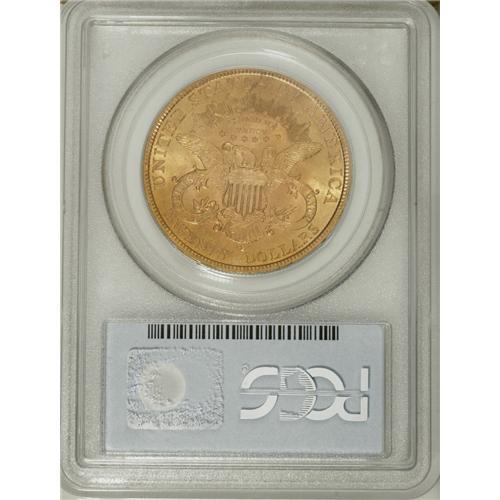 <B>1894-S $20 MS63 PCGS.</B></I> This is a stunning Mint State example with deep orange-gold color and satiny luster. Boldly defined design elements are evident on both sides. Although quite a number of finer grade pieces exist, few can equal this piece for its aesthetic appeal, an aspect every bit as important as technical grade.<BR><BR><b>Shipping:</b> Coin/Currency (<a target="_blank" href="http://www.heritageauctions.com/common/shipping.php">view shipping information</a>)