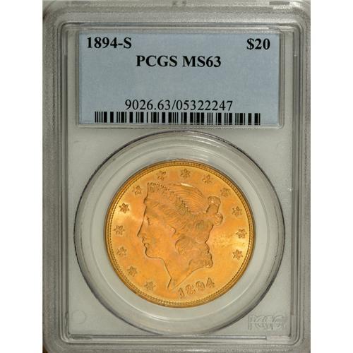 1894-S $20 MS63 PCGS. This is a well struck example wi