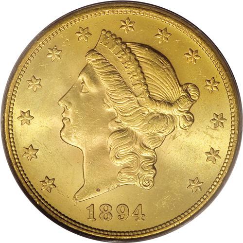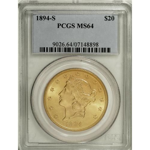 1894-S $20 MS64 PCGS. A Choice Mint State example, thi