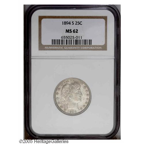 1894-S 25C MS62 NGC. This penetratingly struck S-mint 1894-S[25C] MS62 NGC.
