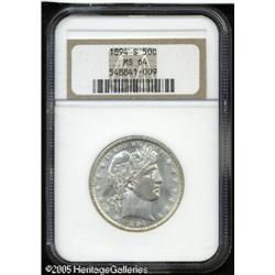 <B>1894-S 50C MS64 NGC.</B></I> Essentially untoned and satiny with a pair of wispy die cracks (as struck) near the reverse peripheries. A well struck and lustrous piece that has a couple of slight abrasions on Liberty's face and neck. Population: 26 in 64, 4 finer (12/04).<BR><I>From The Richard J. Chouinard Collection of United States Coins, Part Two.</B></I> Lot:7128
