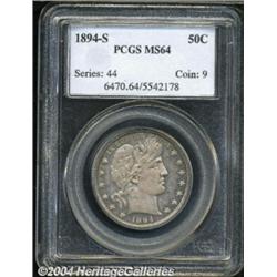 <table><tbody><tr><td><table> <TR><TD width="100%"><TABLE cellSpacing=1 cellPadding=3 width="100%" border=0><TBODY><TR><TD width="100%" bgColor=#79735c><FONT face=arial color=#ffffff size=3><B>Description</B> </FONT></TD></TR><TR><TD width="100%" bgColor=#ffffff><FONT face=arial size=2><B>1894-S 50C MS64 PCGS.</B></I> A boldly struck S-mint with striated fields under a coating of mottled rose-gold and steel-violet toning. Several tiny milling marks on Liberty's cheek are all that stand in the way of Gem status. Population: 16 in 64, 6 finer (10/03). </FONT></TD></TR></TBODY></TABLE></TD></TR></TBODY></TABLE><BR><A name=PricesRealized></A><TABLE cellSpacing=0 cellPadding=0 width="100%" bgColor=#000000 border=0><TBODY><TR><TD width="100%"><TABLE cellSpacing=1 cellPadding=3 width="100%" border=0><TBODY><TR><TD width="100%" bgColor=#79735c><A name=PR><FONT face=arial color=#ffffff size=3><B>Previous Prices from Heritage Auctions</B> </FONT></A></TD></TR><TR><TD bgColor=#f6f6ed><TABLE cellSpacing=0 cellPadding=0 width="100%" border=1><TBODY><TR><TD align=middle width="33%"><B>Date</B></TD><TD align=middle width="33%"><B>Service</B></TD><TD align=middle width="33%"><B>Price</B></TD></TR><TR bgColor=whitesmoke><TD width="33%"><B>01/25/2000</B></TD><TD width="33%">PCGS</TD><TD width="33%">$2,500.00</TD></TR><TR bgColor=whitesmoke><TD width="33%"><B>08/08/2001</B></TD><TD width="33%">ANACS</TD><TD width="33%">$1,621.50</TD></TR><TR bgColor=whitesmoke><TD width="33%"><B>11/18/2000</B></TD><TD width="33%">ANACS</TD><TD width="33%">$1,380.00</TD></TR><TR bgColor=whitesmoke><TD width="33%"><B>03/13/1999</B></TD><TD width="33%">PCGS</TD><TD width="33%">$2,530.00</TD></TR><TR bgColor=whitesmoke><TD width="33%"><B>05/01/2001</B></TD><TD width="33%">PCGS</TD><TD width="33%">$4,675.00</TD></TR><TR bgColor=whitesmoke><TD width="33%"><B>03/01/1998</B></TD><TD width="33%">PCGS</TD><TD width="33%">$3,300.00</TD></TR></TBODY></TABLE></TD></TR><TR><TD bgColor=#ffffff><FONT face=arial size=1 ?>PLEASE NOTE: All prices realized reflect the final hammer price PLUS the buyer's premium in auctions that charge a buyer's premium. Each item has a notation at the top of the listing indicating whether that lot included a buyer's premium. Example: A item that sells with a final hammer price of $100 and a 20% buyer's premium will display with a price realized of $120. All information listed is intended to be as accurate as possible, but errors are possible. Please use this guide carefully and inform us of any inaccuracies. </FONT></TD></TR></TBODY></TABLE></TD></TR></TBODY></TABLE><BR><TABLE cellSpacing=0 cellPadding=0 width="100%" bgColor=#000000 border=0><TBODY><TR><TD width="100%"><TABLE cellSpacing=1 cellPadding=3 width="100%" border=0><TBODY><TR><TD width="100%" bgColor=#79735c colSpan=6><FONT face=arial color=#ffffff size=3><B>Price Guide*</B> </FONT></TD></TR><TR bgColor=#f6f6ed><TD align=middle><B>Grade</B> </TD><TD align=middle><B>Coin World<BR>(Trends)</B> </TD><TD align=middle><B>Numismedia<BR>Retail</B> </TD><TD align=middle><B>Numismedia<BR>Wholesale</B> </TD><TD align=middle><B>Coin<BR>Universe</B> </TD><TD align=middle><B>Heritage<BR>Value Index</B> </TD></TR><TR bgColor=#ffffff><TD align=middle>63</TD><TD align=right>$1,200.00</TD><TD align=right>---</TD><TD align=right>$925.00</TD><TD align=right>$1,275.00</TD><TD align=right>$883.13</TD></TR><TR style="FONT-WEIGHT: bold" bgColor=#cccfdd><TD align=middle>64</TD><TD align=right>$3,300.00</TD><TD align=right>---</TD><TD align=right>$2,050.00</TD><TD align=right>$3,250.00</TD><TD align=right>$2,780.00</TD></TR><TR bgColor=#ffffff><TD align=middle>65</TD><TD align=right>$6,500.00</TD><TD align=right>---</TD><TD align=right>$7,350.00</TD><TD align=right>$11,500.00</TD><TD align=right>$6,682.50</TD></TR><TR bgColor=#ffffff><TD colSpan=6><FONT size=1>*All information listed is intended to be as accurate as possible, but errors are possible. No item may be returned or refused based on this information which is provided as a service to our customers. You should contact each pricing source directly to determine the accuracy of this information. </FONT></TD></TR></TBODY></TABLE></TD></TR></TBODY></TABLE><BR><TABLE cellSpacing=0 cellPadding=0 width="100%" bgColor=#000000 border=0><TBODY><TR><TD width="100%"><TABLE cellSpacing=1 cellPadding=3 width="100%" border=0><TBODY><TR><TD width="100%" bgColor=#79735c><FONT face=arial color=#ffffff size=3><B>Population Guide</B> </FONT></TD></TR><TR bgColor=#ffffff><TD align=middle><!-- Begin Output of Population Grid--><TABLE cellSpacing=0 cellPadding=0 width="100%" border=0><TBODY><TR><TD vAlign=center><TABLE cellSpacing=0 width="100%" border=1 cellsadding="3"><TBODY><TR><TD vAlign=center><TABLE cellSpacing=0 cellPadding=3 width="100%" border=1><TBODY><TR><TD vAlign=center align=middle bgColor=#f0f1e8 colSpan=2 <CENTER><FONT face=Arial size=2><B>PCGS Pop </B></FONT><CENTER></CENTER></TD><TD vAlign=center align=middle bgColor=#f0f1e8 colSpan=2><CENTER><FONT face=Arial size=2><B>NGC Pop</B></CENTER></FONT></TD></TR><TR><TD vAlign=center><FONT face=Arial size=2>(64)</FONT> </TD><TD vAlign=center align=right><FONT face=Arial size=2>16</FONT> </TD><TD vAlign=center><FONT face=Arial size=2>(64)</FONT> </TD><TD vAlign=center align=right><FONT face=Arial size=2>15</FONT> </TD></TR><TR><TD vAlign=center><FONT face=Arial size=2>(>64)</FONT> </TD><TD vAlign=center align=right><FONT face=Arial size=2>6</FONT> </TD><TD vAlign=center><FONT face=Arial size=2>(>64)</FONT> </TD><TD vAlign=center align=right><FONT face=Arial size=2>5</FONT> </TD></TR></TBODY></TABLE></TD></TR></TBODY></TABLE></TD></TR></TBODY></TABLE><!-- End Output of Population Grid--></TD></TR></TBODY></TABLE></TD></TR></TBODY></TABLE><BR><TABLE cellSpacing=0 cellPadding=0 width="100%" bgColor=#000000 border=0><TBODY><TR> <font color='#000000'><span style='background-color: #FFFFFF'><td bgcolor='#FFFFFE'> Important notice: Heritage usually auctions material at the rate of 200-