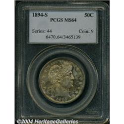 <B>1894-S<50C> MS64 PCGS.</B></I> The obverse is covered in a blanket of color that includes rich blue, gold, and amber hues. The reverse, on the other hand, displays just a touch of golden color and is frosty in appearance. Both sides share the common trait of being extremely clean and well-struck, a single mark on the reverse shield being the only individually notable imperfection. Population: 18 in 64, 7 finer (3/04). <BR><BR><B>Important notice:</B> Heritage usually auctions material at the rate of 200-250 lots per hour. On some occasions eBay Live bid software or the Internet may not be able to keep up with the pace of the auction. We recommend placing a realistic absentee bid now as insurance to avoid disappointment. Occasionally the auctioneer may eliminate or reject an eBay Live bid, and the auctioneer may also reopen a lot after the close of the eBay live bidding (usually because we missed an audience bid), and may reject your bid even if it shows you as the winning bidder. By bidding via eBay Live, you agree that Heritage may award the lot to another bidder at its sole discretion under the circumstances described above or any other reasonable circumstances. Since eBay bids are not shown to us until we open the lot on the floor, we treat those bids just like floor bids. In most cases the floor responds before the eBay bid is presented to us, due to Internet lag time, so for consistency we have made it a policy that floor bids are always considered first over tie eBay live bids. Also please note that all Heritage lots purchased through eBay Live carry a 20% Buyer's Premium. Please make sure you read the Terms and Conditions before you bid. </span></font></tr></table></td></tr></table>