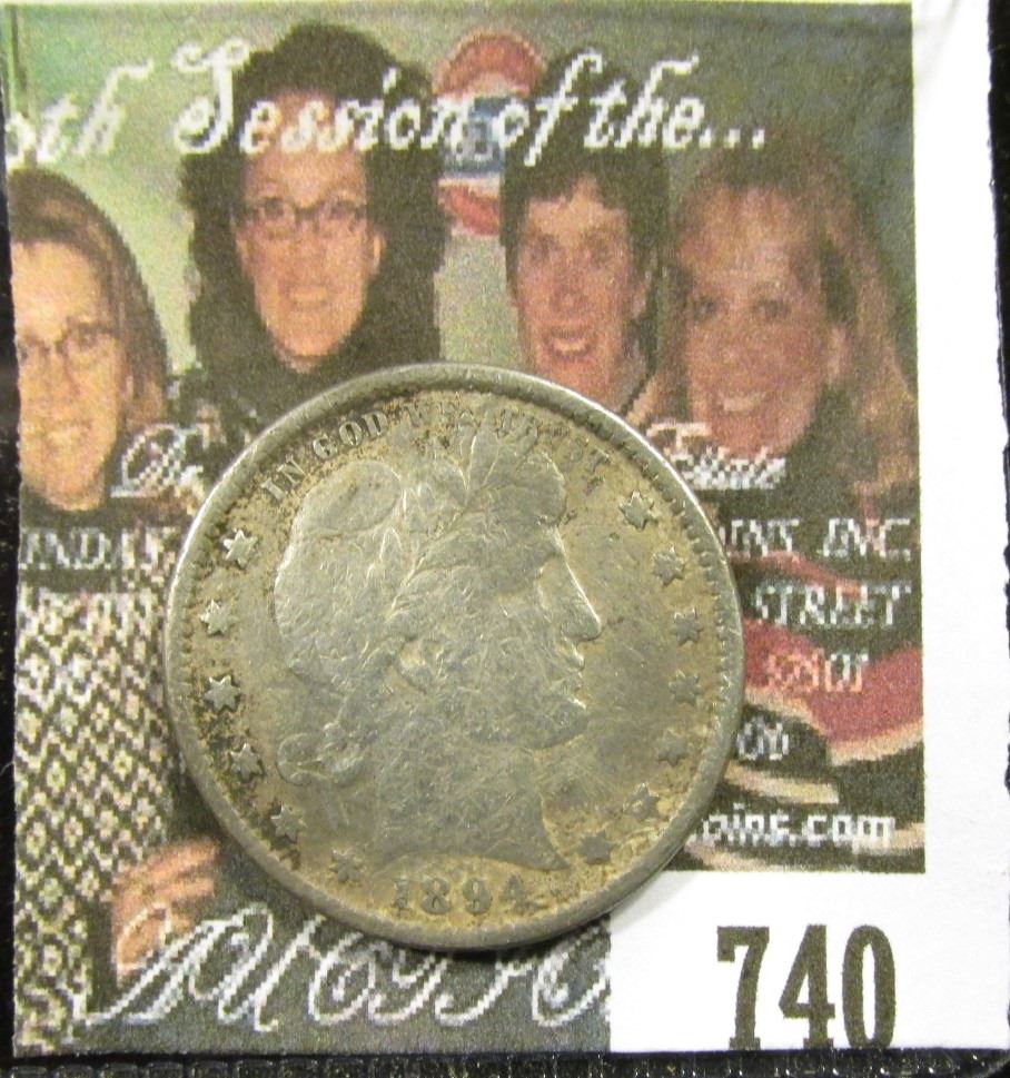 1894 S Barber Quarter VF Rough Surfaces and Slight Bend.