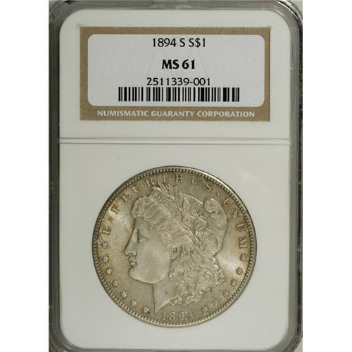 1894-S S$1 MS61 NGC. Well struck with satin luster and