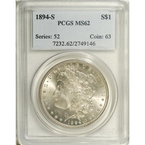 1894-S S$1 MS62 PCGS. Highly lustrous with an above-av