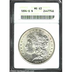 1894-S S$1 MS63 ANACS. A lustrous and nicely struck Morgan Dollar that has surprisingly clean fields