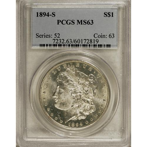 1894-S S$1 MS63 PCGS. The semi-reflective surfaces are