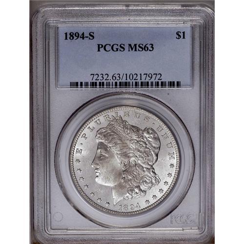 1894-S S$1 MS63 PCGS. Well struck with exceedingly bri 1894-S[img border='0' src='http://www.heritag