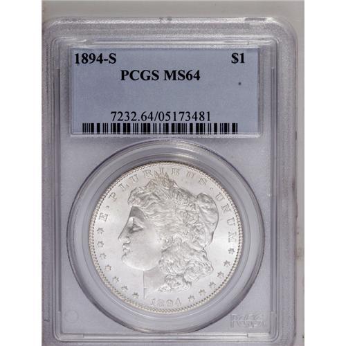 1894-S S$1 MS64 PCGS. Bright and untoned, with semi-pr