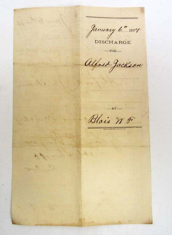 1894 SAVANNAH GEORGIA PRISON DISCHARGE PAPER - MALICIOUS MISCHIEF