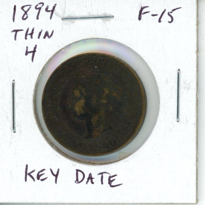 1894 Thin 4 Canadian Victorian Large Cent. Key Date. F-15.