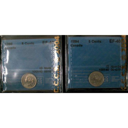 1894 and 1899 5¢, both CCCS graded EF-40