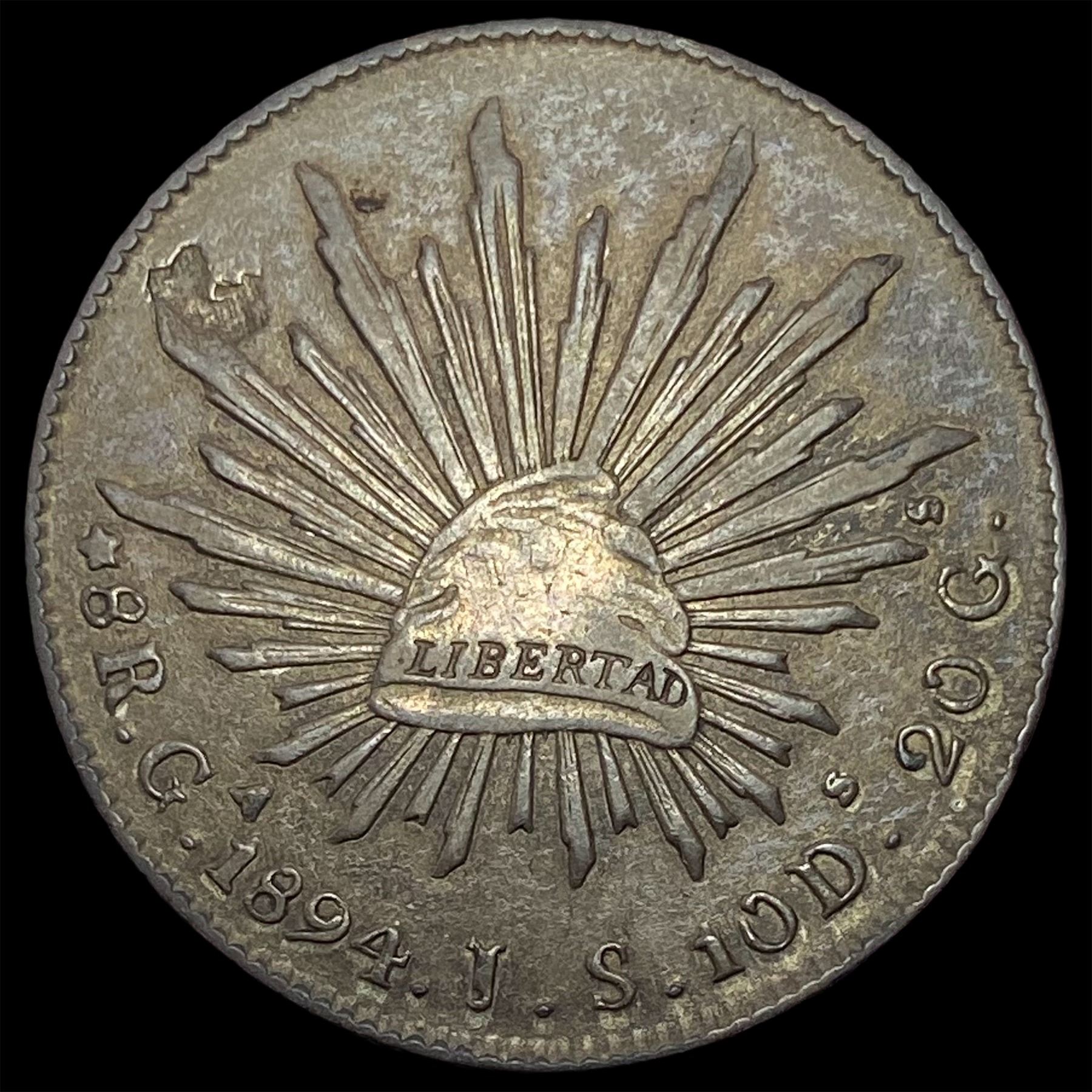 1894GA JS Mexico Silver 8 Reales Cap and Rays CLOSELY UNCIRCULATED
