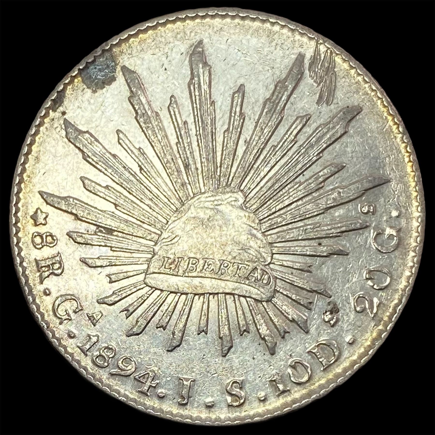 1894Ga JS Mexico Silver 8 Reales Cap and Rays UNCIRCULATED