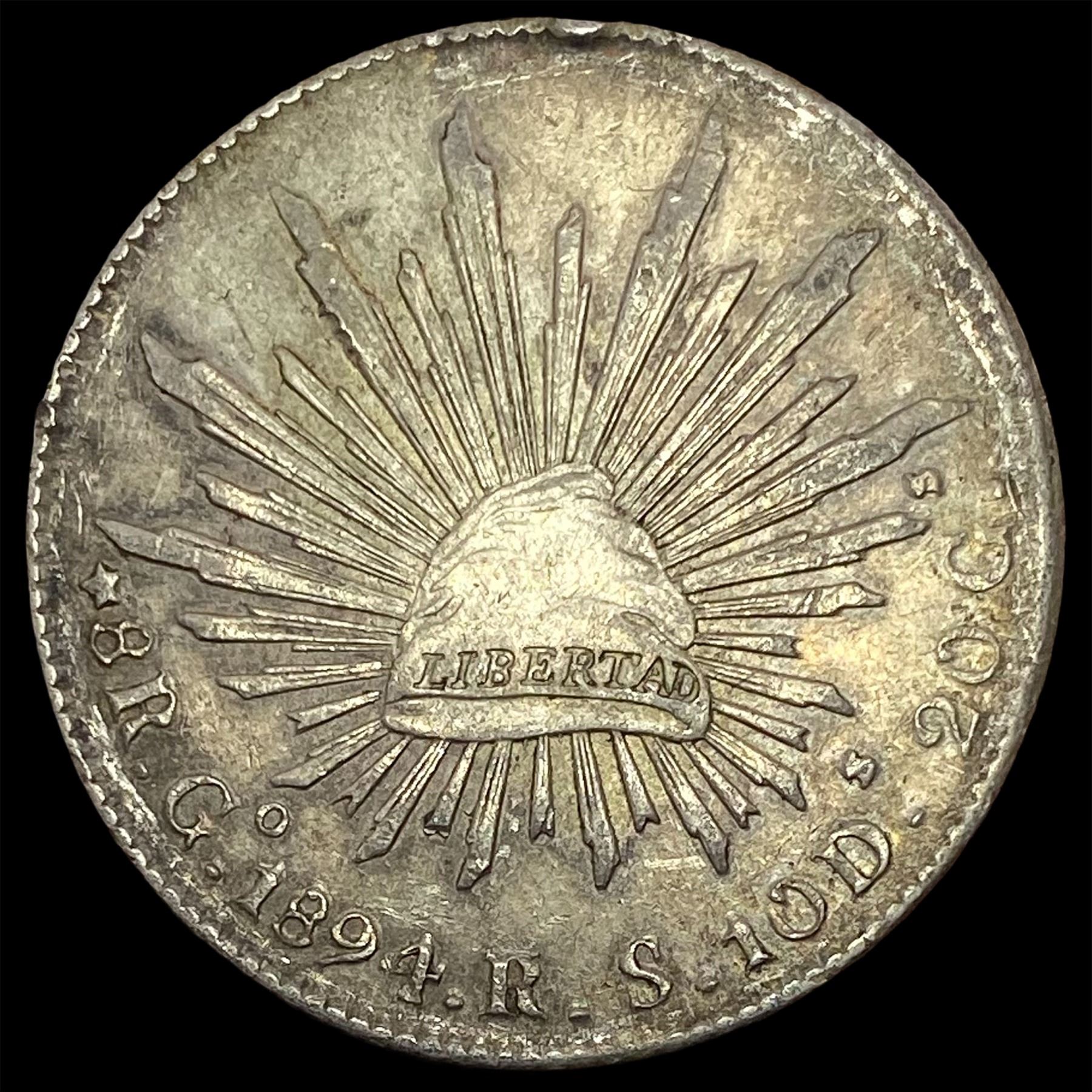 1894Go RS Mexico Silver 8 Reales Cap and Rays CLOSELY UNCIRCULATED