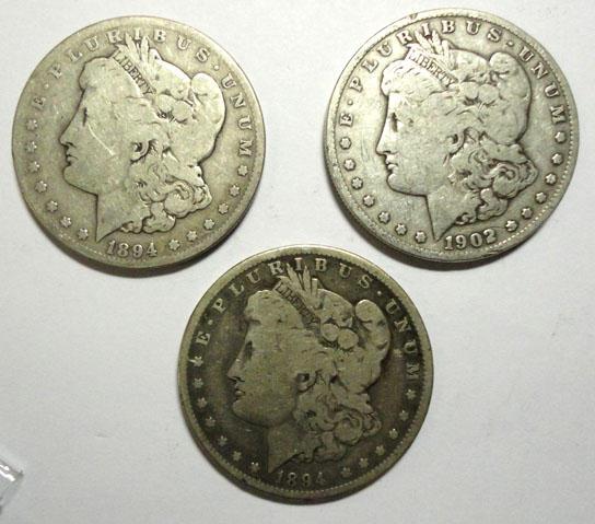 1894O VG and 1894S G/VG and 1902S VG Morgan $