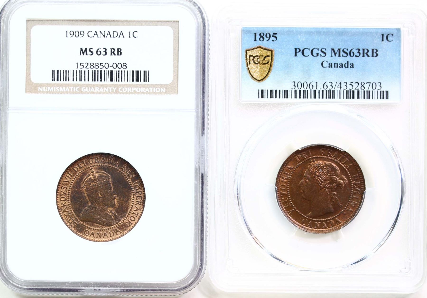 1895 1¢, 1909 Both coins PCGS/NGC Choice Mint State-63RB, Two very nice and attractive examples.