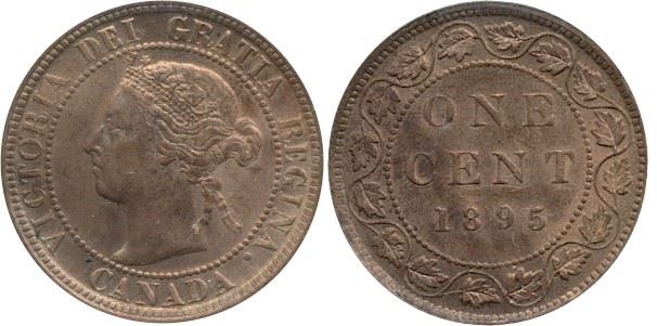 1895 1¢ ICCS MS64RD. 85% red with lustre.