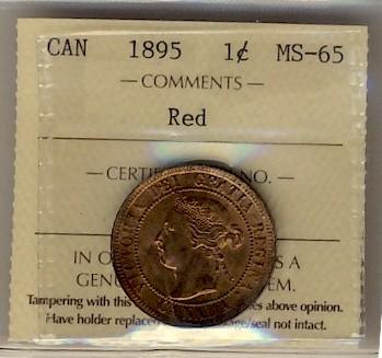 1895 1¢ ICCS MS65RD. 80% red with strong lustre.