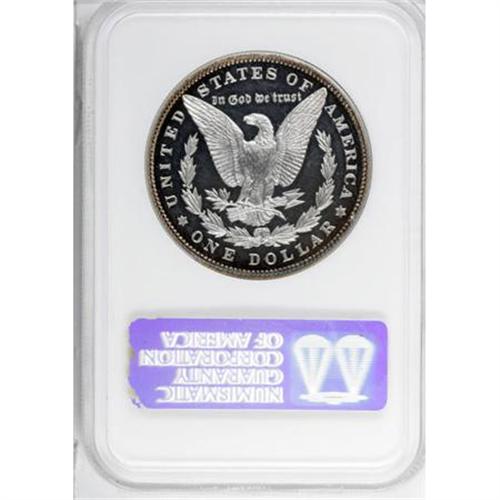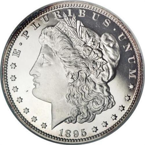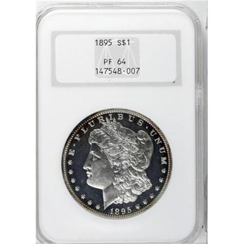 <B>1895 $1 PR64 NGC.</B></I> The famous proof-only Morgan dollar issue of 1895, with its original mintage of only 880 specimens, has accrued plenty of allure in recent decades. As the 1895 has gained acceptance as an integral part of a complete series collection, demand has increased exponentially, and authentication services have made transactions involving that key issue increasingly secure. Between increased confidence on the part of buyers and sellers and increased clarity on the issue's survival, the market for specimens has become incredibly robust.<BR> Though resubmissions affect the combined certified population of 1895 proof Morgan dollars, most scholars estimate that more than half of the original population exists today, a figure in line with the <I>Census Report</B></I> and <I>Population Report</B></I> numbers. While demand for specimens far outstrips the supply, there is sufficient leeway for the numismatic connoisseur to identify and acquire an attractive exemplar. Q. David Bowers expressed this sentiment plainly in his 2006 work <I>A Buyer's Guide to Silver Dollars & Trade Dollars of the United States</B></I>: "If you decide to add an 1895 to your collection, take time and pick out a nice one."<BR> For this issue in near-Gem, one can hardly do better than the present piece. Both sides offer obvious contrast, though the prior-generation NGC holder does not list any such designation. The overall level of detail is excellent, though a trace of softness appears at the hair above Liberty's ear, and tan and cornflower-blue patina at the rims leaves the centers essentially untoned. Despite a handful of grade-defining flaws in the fields, this specimen offers outstanding visual appeal. A marvelous opportunity for the discerning collector.<BR><BR><B>Coin Engraver:</B> George T. Morgan<BR><BR><b>Shipping:</b> Coins & Currency (<a target="_blank" href="http://www.heritageauctions.com/common/shipping.php">view shipping information</a>)