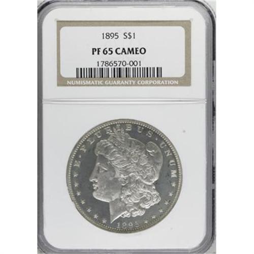 <B>1895 $1 PR65 Cameo NGC.</B></I> For silver dollar enthusiasts, the year 1895 has always been magical, and a myth was born about a hundred years ago when Morgan dollars of this date, without mintmarks and therefore made at Philadelphia, were occasionally listed in auctions and dealer sales lists as slightly circulated pieces. Such coins continued to appear on the numismatic scene for the first seven decades, approximately, of the 20th century. The Red Book continues to list this year’s mintage as 12,880. Proofs made for collectors account for the 880 coins, a fairly normal number, but what of the 12,000 figure? It is an official U.S. Mint account of silver dollars struck. Evidently it was a clerical error, possibly pertaining to 1894 dollars struck at the end of the year, possibly just an errant figure entered into mint production logs, or it is remotely possible that 12,000 Morgan dollars were minted for commerce but that they were melted. Many ideas have been published. Whatever the truth may be, the myth of this date existing as business strikes has been carried forth into our own time. <BR> However, long before there were grading services, long before there were data bases for PCGS and NGC or other grading companies, and long before today’s more scientific and systematic examination of rare coins, a darkly toned or impaired proof might well have been confused with a business strike, and listed in an auction or dealer list as, say, About Uncirculated. The term itself perpetuated the myth. Third-party grading services have now been in existence for several decades, and PCGS with its data base is more than 20 years old. Close-up photography, including digital imaging, has brought an added dimension to coin examination that was not possible when the myth of the business strike 1895 silver dollar was born. No silver dollar of this date from Philadelphia has yet been discovered to be other than of proof manufacture. Thus, the coin often called the “King of Silver Dollars” has a total possible population of just 880 pieces, certainly among the smallest number among coins of this, one of the most popular of all series of U.S. coins. It is a date so sought after by collectors that even major auctions sometimes do not offer a single coin. The majority of the 880 coins struck are always “off the market.”<BR> This piece also will surely be "off the market" soon. A solid Gem proof, the surfaces are nearly defect-free. The fields show the deep reflectivity one would expect from a well-produced proof, and the devices have a significant amount of mint frost which yields a noticeable cameo contrast on each side. Both obverse and reverse are evenly draped with light golden-brown toning. Certainly one of the most attractive 1895 dollars we have seen in some time. <BR><I>From the Reuben Reinstein Collection.</B></I><BR><BR><b>Shipping:</b> Coins & Currency (<a target="_blank" href="http://www.heritageauctions.com/common/shipping.php">view shipping information</a>)