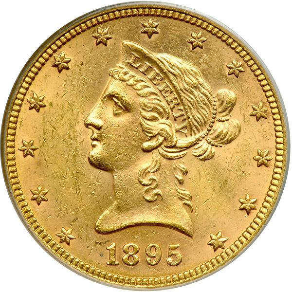 1895 $10 Liberty. PCGS graded MS-62. Well struck and frosty (PCGS # 8732) .