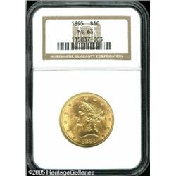 <B>1895 $10 MS63 NGC.</B></I> Premium quality for the grade with a flashy honey-gold appearance throughout. The eye appeal is very sharp with several light luster grazes preventing the MS64 status. Lot:8808