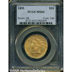 <B>1895 $10 MS64 PCGS.</B></I> Wheat-gold surfaces with faded reddish-orange undertones reveal soft, glowing luster, sharply struck design elements, and a few trivial, hardly noticeable marks. This eagle enjoys splendid eye appeal.