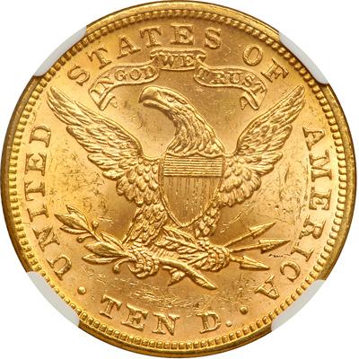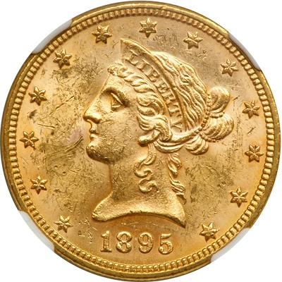 1895 $10. NGC graded MS-62. Lightly toned. A couple of moderate obverse contact marks.