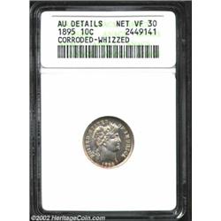 1895 10C--Corroded, Whizzed--ANACS. AU Details, Net VF30. A whizzed and cleaned example that has a porous surface in the obverse field. The toughest P-mint issue in the series.From the Richard Sundberg Collection. Important notice: We expect to be auctioning lots at the rate of 200-250 per hour. Sometimes eBay Premier live bid software cannot keep up with that pace, so we strongly recommend that you place a realistic proxy bid now as insurance to avoid disappointment. Also please note that all Heritage/CAA lots purchased through eBay Premier carry a 20% Buyer's Premium. Please make sure you read the Terms and Conditions.