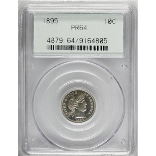 <B>1895 10C PR64 PCGS.</B></I> A needle-sharp Choice proof dime with light golden-gray toning. The 1895 is the scarcest Philadelphia date of the series. Certified in an old green label holder.<BR><BR><b>Shipping:</b> Coins & Currency (<a target="_blank" href="http://www.heritageauctions.com/common/shipping.php">view shipping information</a>)