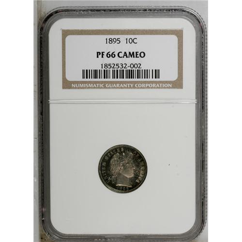 1895 10C PR66 Cameo NGC. Lush, attractive toning in sh