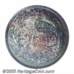 <table><tr><td><TABLE cellSpacing=0 cellPadding=0 width="100%" bgColor=#000000 border=0><TBODY> <TR><TD width="100%"><TABLE cellSpacing=1 cellPadding=3 width="100%" border=0><TBODY><TR><TD width="100%" bgColor=#79735c><FONT face=arial color=#ffffff size=3><B>Description</B> </FONT></TD></TR><TR><TD width="100%" bgColor=#ffffff><FONT face=arial size=2><B>1895 10C PR67 NGC.</B></I> There is a veritable explosion of rainbow colored, iridescent undertones on both sides of this otherwise olive-copper example. The overlying color fades to lighter tan tinted shades in a few areas toward the centers, one of the many features that confirms the originality of this smooth Superb Gem. The fields glow with deep reflectivity at most angles, and the crisp devices are fully appreciable. A conditionally scarce example with just 24 coins in PR67 at NGC, and a mere 5 finer (7/03). </FONT></TD></TR></TBODY></TABLE></TD></TR></TBODY></TABLE><BR><A name=PricesRealized></A><TABLE cellSpacing=0 cellPadding=0 width="100%" bgColor=#000000 border=0><TBODY><TR><TD width="100%"><TABLE cellSpacing=1 cellPadding=3 width="100%" border=0><TBODY><TR><TD width="100%" bgColor=#79735c><A name=PR><FONT face=arial color=#ffffff size=3><B>Previous Prices from Heritage Auctions</B> </FONT></A></TD></TR><TR><TD bgColor=#f6f6ed><TABLE cellSpacing=0 cellPadding=0 width="100%" border=1><TBODY><TR><TD align=middle width="33%"><B>Date</B></TD><TD align=middle width="33%"><B>Service</B></TD><TD align=middle width="33%"><B>Price</B></TD></TR><TR bgColor=whitesmoke><TD width="33%"><B>07/29/2003</B></TD><TD width="33%">PCGS</TD><TD width="33%">$5,175.00</TD></TR><TR bgColor=whitesmoke><TD width="33%"><B>05/31/2003</B></TD><TD width="33%">PCGS</TD><TD width="33%">$4,887.50</TD></TR><TR bgColor=whitesmoke><TD width="33%"><B>06/01/2000</B></TD><TD width="33%">NGC</TD><TD width="33%">$2,760.00</TD></TR><TR bgColor=whitesmoke><TD width="33%"><B>11/01/1999</B></TD><TD width="33%">PCGS</TD><TD width="33%">$4,125.00</TD></TR></TBODY></TABLE></TD></TR><TR><TD bgColor=#ffffff><FONT face=arial size=1 ?>PLEASE NOTE: All prices realized reflect the final hammer price PLUS the buyer's premium in auctions that charge a buyer's premium. Each item has a notation at the top of the listing indicating whether that lot included a buyer's premium. Example: A item that sells with a final hammer price of $100 and a 20% buyer's premium will display with a price realized of $120. All information listed is intended to be as accurate as possible, but errors are possible. Please use this guide carefully and inform us of any inaccuracies. </FONT></TD></TR></TBODY></TABLE></TD></TR></TBODY></TABLE><BR><TABLE cellSpacing=0 cellPadding=0 width="100%" bgColor=#000000 border=0><TBODY><TR><TD width="100%"><TABLE cellSpacing=1 cellPadding=3 width="100%" border=0><TBODY><TR><TD width="100%" bgColor=#79735c colSpan=6><FONT face=arial color=#ffffff size=3><B>Price Guide*</B> </FONT></TD></TR><TR bgColor=#f6f6ed><TD align=middle><B>Grade</B> </TD><TD align=middle><B>Coin World<BR>(Trends)</B> </TD><TD align=middle><B>Numismedia<BR>Retail</B> </TD><TD align=middle><B>Numismedia<BR>Wholesale</B> </TD><TD align=middle><B>Coin<BR>Universe</B> </TD><TD align=middle><B>Heritage<BR>Value Index</B> </TD></TR><TR bgColor=#ffffff><TD align=middle>66</TD><TD align=right>---</TD><TD align=right>---</TD><TD align=right>$1,875.00</TD><TD align=right>$2,100.00</TD><TD align=right>$1,425.00</TD></TR><TR style="FONT-WEIGHT: bold" bgColor=#cccfdd><TD align=middle>67</TD><TD align=right>---</TD><TD align=right>---</TD><TD align=right>$3,175.00</TD><TD align=right>$4,600.00</TD><TD align=right>$3,220.00</TD></TR><TR bgColor=#ffffff><TD align=middle>68</TD><TD align=right>---</TD><TD align=right>---</TD><TD align=right>$6,150.00</TD><TD align=right>---</TD><TD align=right>---</TD></TR><TR bgColor=#ffffff><TD colSpan=6><FONT size=1>*All information listed is intended to be as accurate as possible, but errors are possible. No item may be returned or refused based on this information which is provided as a service to our customers. You should contact each pricing source directly to determine the accuracy of this information. </FONT></TD></TR></TBODY></TABLE></TD></TR></TBODY></TABLE><BR><TABLE cellSpacing=0 cellPadding=0 width="100%" bgColor=#000000 border=0><TBODY><TR><TD width="100%"><TABLE cellSpacing=1 cellPadding=3 width="100%" border=0><TBODY><TR><TD width="100%" bgColor=#79735c><FONT face=arial color=#ffffff size=3><B>Population Guide</B> </FONT></TD></TR><TR bgColor=#ffffff><TD align=middle><!-- Begin Output of Population Grid--><TABLE cellSpacing=0 cellPadding=0 width="100%" border=0><TBODY><TR><TD vAlign=center><TABLE cellSpacing=0 width="100%" border=1 cellsadding="3"><TBODY><TR><TD vAlign=center><TABLE cellSpacing=0 cellPadding=3 width="100%" border=1><TBODY><TR><TD vAlign=center align=middle bgColor=#f0f1e8 colSpan=2 <CENTER><FONT face=Arial size=2><B>PCGS Pop </B></FONT><CENTER></CENTER></TD><TD vAlign=center align=middle bgColor=#f0f1e8 colSpan=2><CENTER><FONT face=Arial size=2><B>NGC Pop</B></CENTER></FONT></TD></TR><TR><TD vAlign=center><FONT face=Arial size=2>(67)</FONT> </TD><TD vAlign=center align=right><FONT face=Arial size=2>14</FONT> </TD><TD vAlign=center><FONT face=Arial size=2>(67)</FONT> </TD><TD vAlign=center align=right><FONT face=Arial size=2>24</FONT> </TD></TR><TR><TD vAlign=center><FONT face=Arial size=2>(>67)</FONT> </TD><TD vAlign=center align=right><FONT face=Arial size=2>0</FONT> </TD><TD vAlign=center><FONT face=Arial size=2>(>67)</FONT> </TD><TD vAlign=center align=right><FONT face=Arial size=2>5</FONT> </TD></TR></TBODY></TABLE></TD></TR></TBODY></TABLE></TD></TR></TBODY></TABLE><!-- End Output of Population Grid--></TD></TR></TBODY></TABLE></TD></TR></TBODY></TABLE><BR><TABLE cellSpacing=0 cellPadding=0 width="100%" bgColor=#000000 border=0><TBODY><TR> Important notice: Heritage usually auctions material at the rate of 200-250 lots per hour. On some occasions e